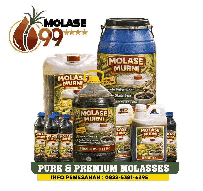 Anda mencari Molase tetes tebu rekomendasi di Jepara - Molase99 adalah nutrisi multifungsi yang efektif sebagai booster nafsu makan ternak, aktivator fermentasi pakan dan pupuk, serta penjaga kualitas air pada tambak/bioflok. Kaya akan energi alami, produk ini menjadi solusi hemat untuk meningkatkan produktivitas hasil peternakan, perikanan, hingga bahan baku industri secara optimal